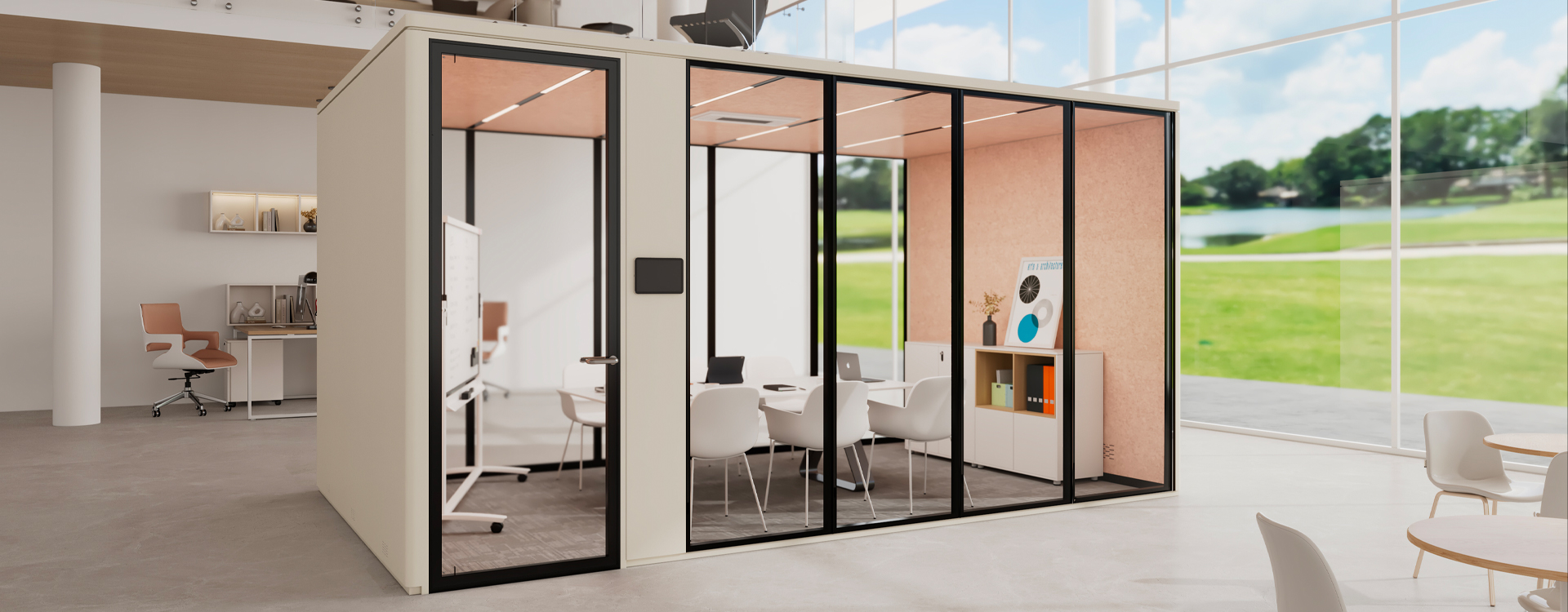 FlexSpace's pods impresses with a good sound level reduction (up to 38%) keeping your space privacy.